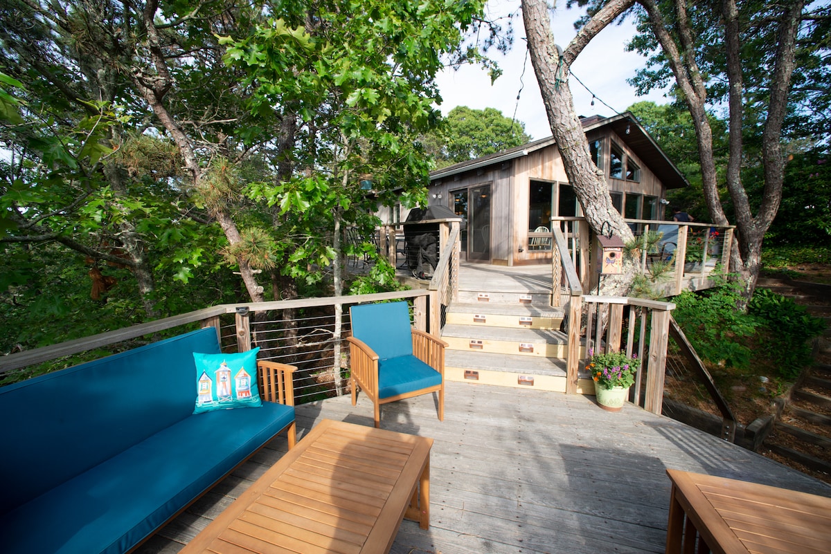 Escape to our unique Writer’s Cabin in the peaceful woods of Wellfleet—a magical retreat that feels like you're staying in a treehouse! You'll be surrounded by nature yet just minutes' drive from stunning beaches, crystal-clear ponds, scenic trails, and a short stroll to charming Wellfleet harbor and quaint town center. Relax and unwind at our brand-new Magnolia Spa (opening in June), featuring a hot tub and sauna. On-site massage therapy begins in July—ask us about exclusive guest rates!