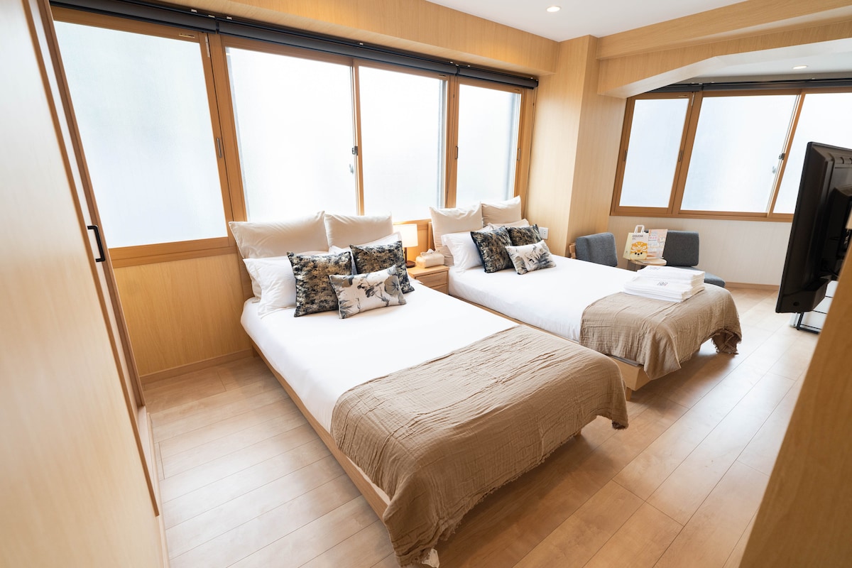 美國村店/雙大床房/最大4人/地鐵步行5分/潮牌街橘子街心齋橋難波道頓堀法善寺