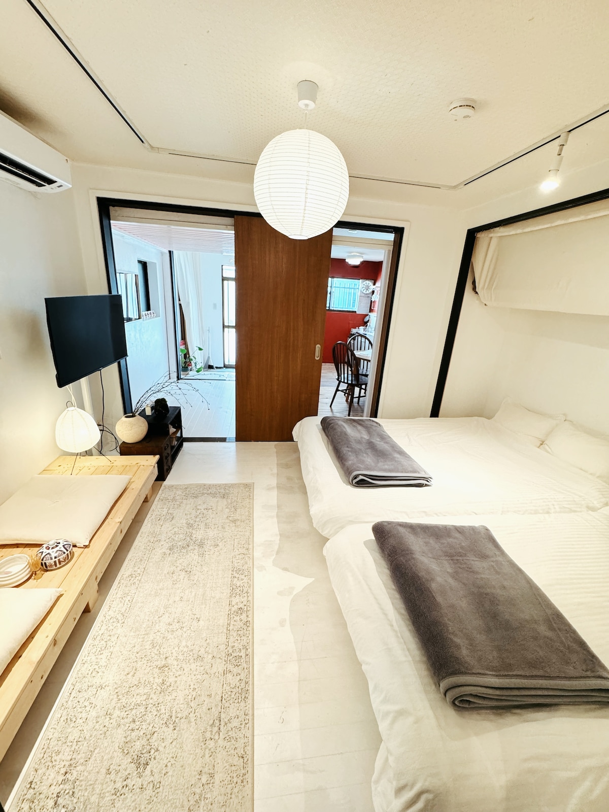 ★我们提供英语、中文和日语服务,欢迎随时联系我们。(^^) ★一楼有一间卧室。 此房源拥有一间浴室🛀、一间厨房、两个洗脸池,两个卫生间🚾,三间卧室,还有一间客厅,均经过全面翻新。 ★大阪市内最佳交通选择之一 交通便利,可搭乘三条线路:JR大阪环状线、近铁和地铁。可直达大阪站、难波、天王寺和奈良。鹤桥站距离酒店约450米,步行5~10分钟即可到达。 ★鹤桥的乐趣远胜其他地区。 从鹤桥站下车后,各种餐厅的美味香气扑鼻而来,迎接您的是热闹的鹤桥商店街,这里保留着昭和时代的复古氛围,是美食爱好者的天堂。这里人头攒动,聚集了众多知名餐厅,供应烤肉、烤鸡肉串、河豚、寿司和拉面。单是鹤桥一带,就足以让您流连忘返一整天。 ★步行1分钟即可到达罗森便利店,步行2分钟即可到达温泉设施。在大阪游玩一天后,何不带家人朋友前往天然温泉“延羽之汤”呢?距离本房源仅2分钟步行路程。