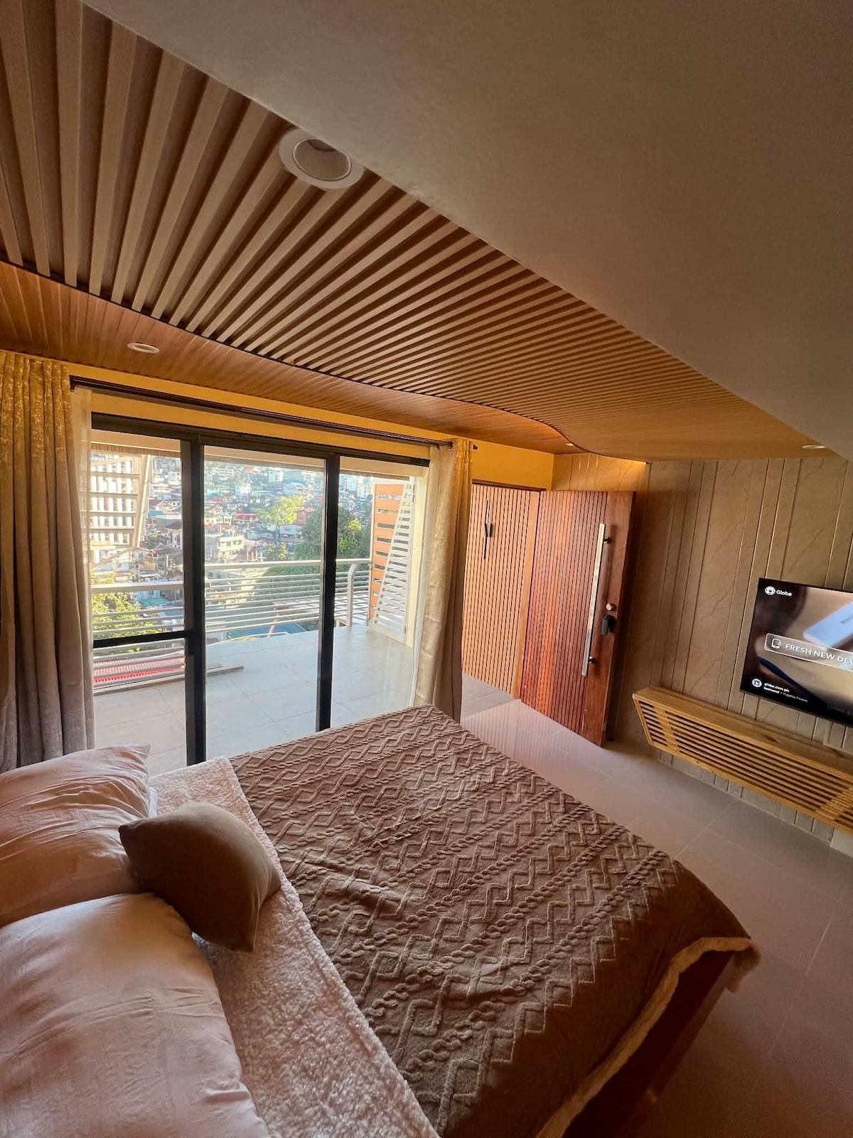 Just 3.5 kms from city center but tucked away in a lush, very fresh environment. Enjoy clean cold mountain air, sweet smell of pine trees, and amazing sight of fog. The industrial rustic design and warm interiors bow to the stunning natural beauty of its surroundings. Large glass walls let in glorious natural light at daytime and astonishing city lights at night. The majestic views from the large roof deck will take your breath away. Baguio Hillhouse is beyond accommodation, it is an experience.