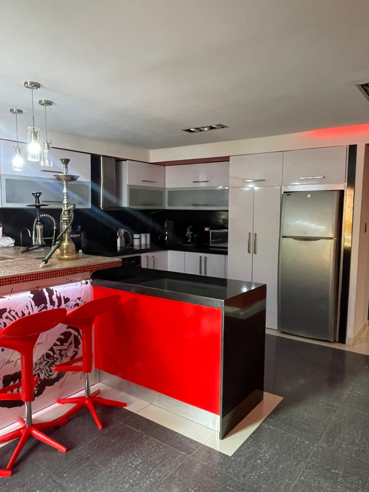 El apartamento tiene ese calor humano que uno busca al alojarse en cualquier lugar. Contrasta su decoración moderna con la bahía del Parque Nac. Morrocoy, pero armoniza. El tener una lancha bajando el ascensor, caminando 100 pasos, es una delicia (costo de lancha aparte). La cocina es el centro del apartamento y la doble altura de la sala le da ese atractivo que te hará querer volver. El apartamento tiene WiFi. ¡Es un lugar paradisiaco!