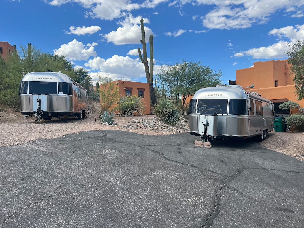 Welcome to peace and solitude. Enjoy the beauty of the desert, lush gardens, and mountain views while you relax in this pristine Airstream. Located on a private 1-acre property at base of Mount Lemmon in lovely Tucson, Arizona. Soak those achey muscles in the hot tub under the bright stars. Close to Mount Lemmon, Sabino Canyon, and Saguaro National Park. Grill out, bundle up by the fire pit, or simply enjoy the space with a glass of wine. Enjoy the relaxing comfort of this unique experience!