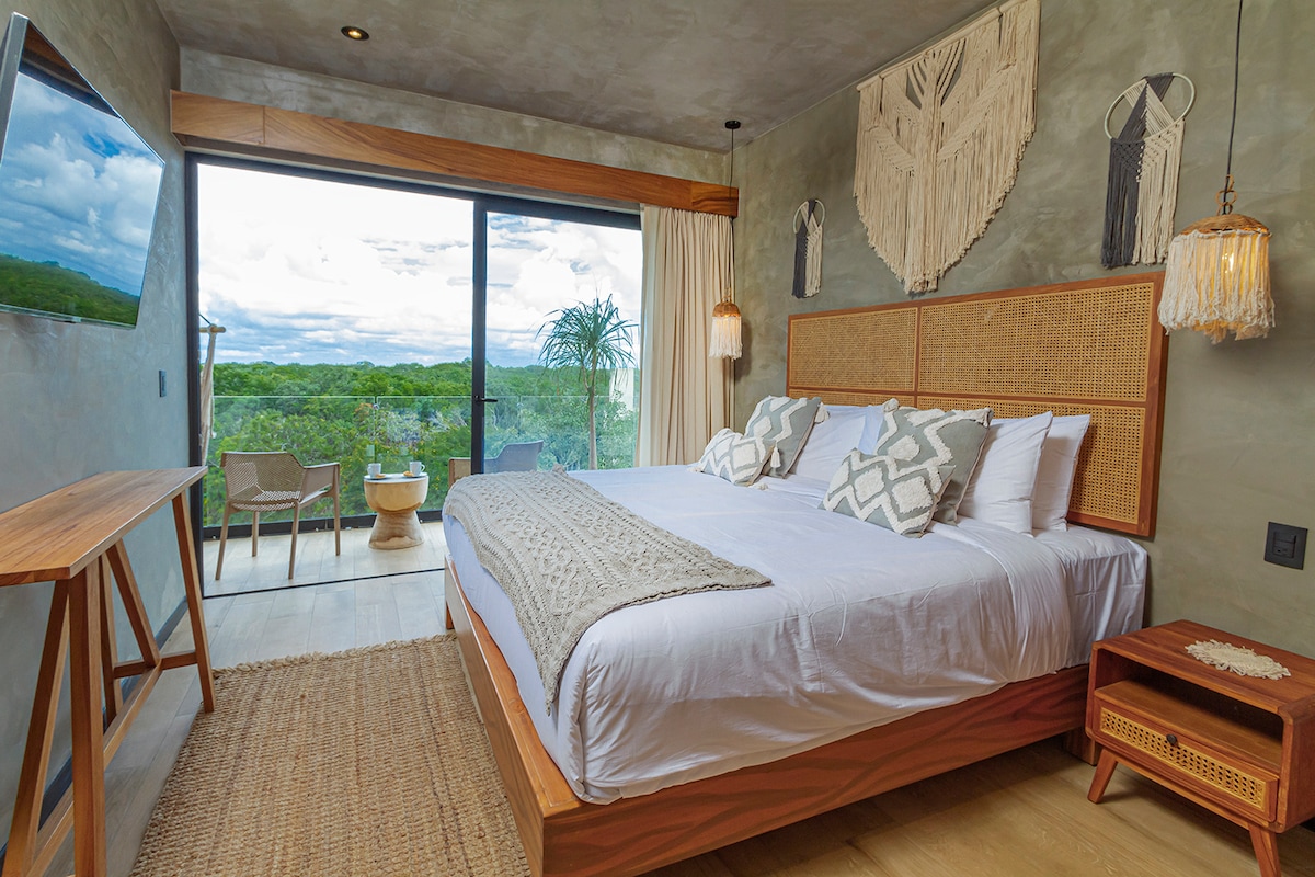 Welcome to this meticulously designed studio in vibrant Tulum Centro. Perfect for solo travelers or couples, it blends comfort, style, and convenience. Featuring a king-size bed, smart TV, a fully equipped kitchen, and a private balcony with garden views. Enjoy the rooftop pool, paddle tennis court, and access to vibrant art installations. Your reservation includes complimentary concierge service, and direct reservations for some of the best beach clubs.