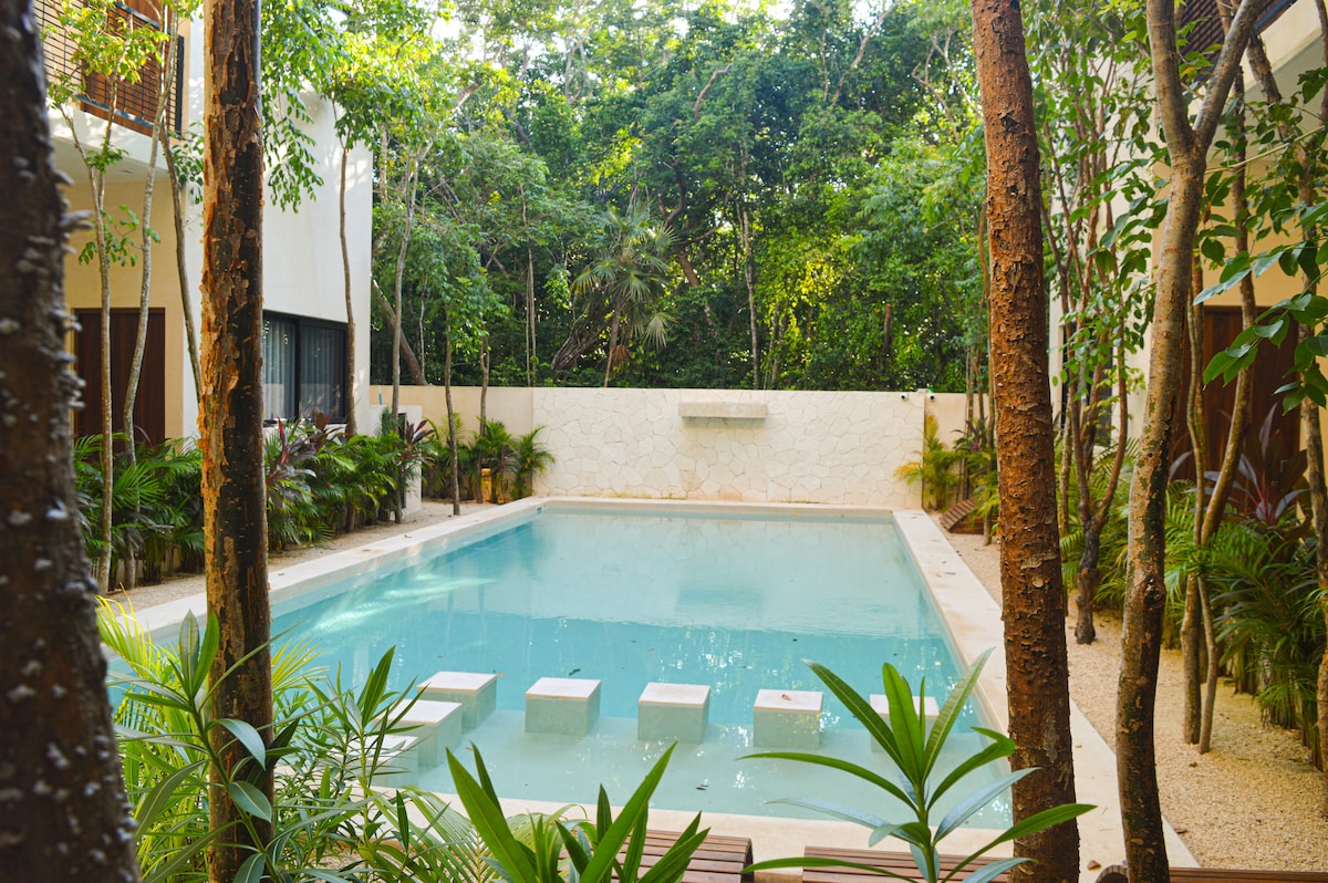 🌴Welcome to Adora, a 2 bedroom, 2 bath condo in a resort-like complex! The comfort of the condo is private and peaceful offering a fully equipped kitchen inside and a private pool outside. The location and onsite amenities provide a guest-exclusive cenote, restaurant bar, steam room, massage, cabanas alongside a pool & hot tub, and beach club discounts! Immerse yourself in this magical experience with many luxuries at your fingertips!