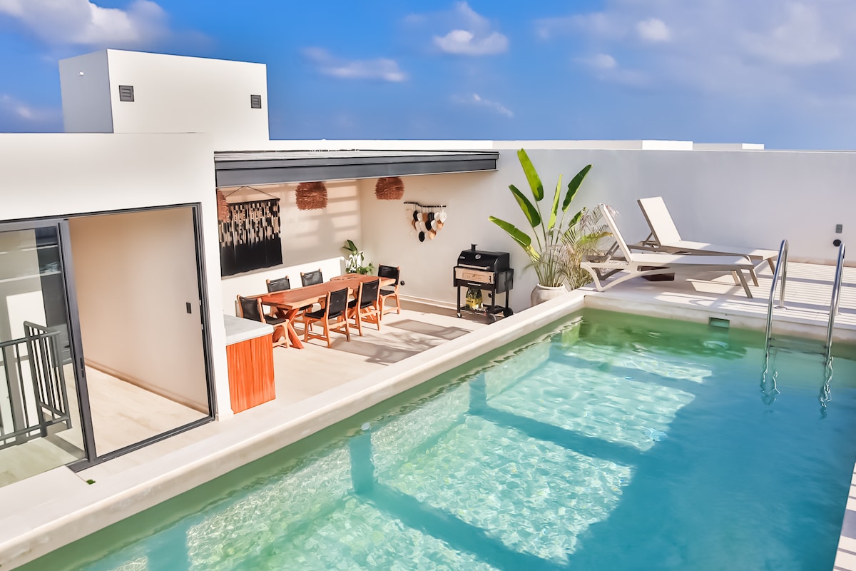 Embrace Tulum's Magic From Your Private Rooftop Paradise Welcome to your exclusive three-story penthouse retreat in the heart of Tulum's coveted Aldea Zama neighborhood. This architectural gem combines contemporary luxury with authentic Mexican charm, creating an unforgettable escape that perfectly captures Tulum's magical essence.