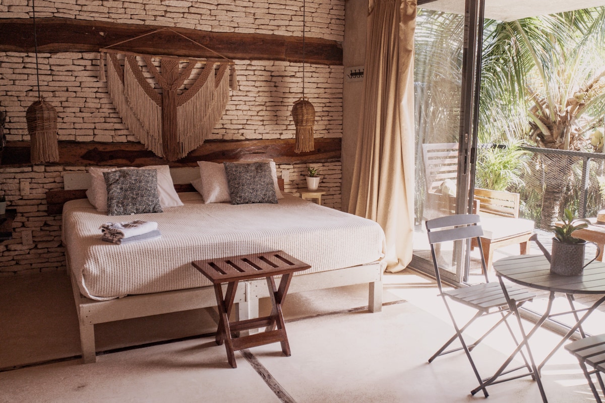 ¡Bienvenido a nuestro exclusivo oasis en Tulum! Privacidad y comodidad se combinan en un piso completo con tres amplias habitaciones. Toda la planta es solo para tu grupo, lo que garantiza máxima privacidad. Cada habitación tiene cama king, aire acondicionado y balcón privado. La ubicación es incomparable. Nos encontramos a solo dos minutos a pie de las playas más hermosas de Tulum, famosas en todo el mundo por su arena blanca y aguas cristalinas.