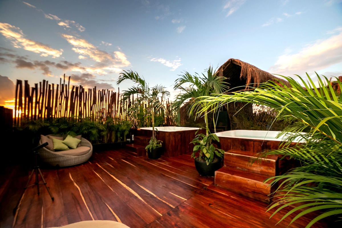 PRIVATE ROOFTOP w JACUZZI Welcome to Tulum's only upscale development with natural cenote, world class amenities, and strategic location right between Tulum Beach and Centre, walk to Tulum's only supermarket. ● Private Cenote ● Rooftop Pool ● Private Rooftop w Private Jacuzzi ● 6+ Lagoon Pools ● Panoramic views ● Big Gym ● 5+ Hot Tubs ● Jungle Circle for Walks ● Very Fast Wi-Fi ● Coworking Office ● Bathroom Essentials Provided ● Towels Provided ● Free Garage Parking ● 24/7 Security