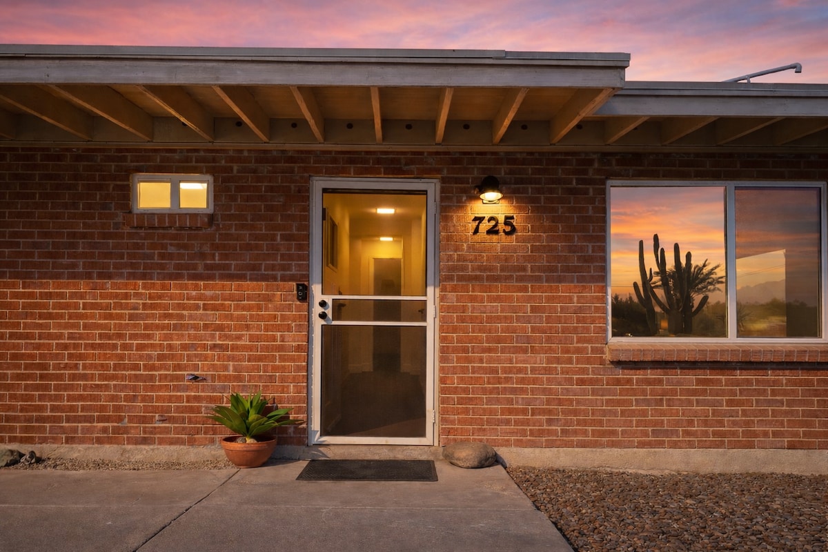 Enjoy a relaxing stay in this private guest suite just 3.5 miles west of downtown. With your own private entrance in this mid-century desert home you will enjoy listening to mourning doves coo as you cool off in the outdoor shower and soak in the private hot tub. The gas fire-pit keeps you cozy and warm on cool desert nights and sets the pace for a quiet and peaceful stay under the stars. Close to the AZ-Sonora Desert Museum, Saguaro Monument West, UofA, UNESCO famed eateries, museums and more!