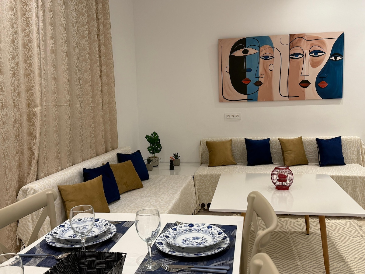 🌙 Mille et Une Nuits | Sidi Bou Saïd Escape to serenity just steps from the heart of Sidi Bou Saïd. This stylish Arab-Andalusian apartment offers a romantic canopy bed, vibrant lounge, full kitchen, and spacious bathroom. Perfectly located near ancient ruins, the beach, and the iconic village, it's ideal for a peaceful summer stay close to all the charm without the crowds. Your story begins here—book your escape today.