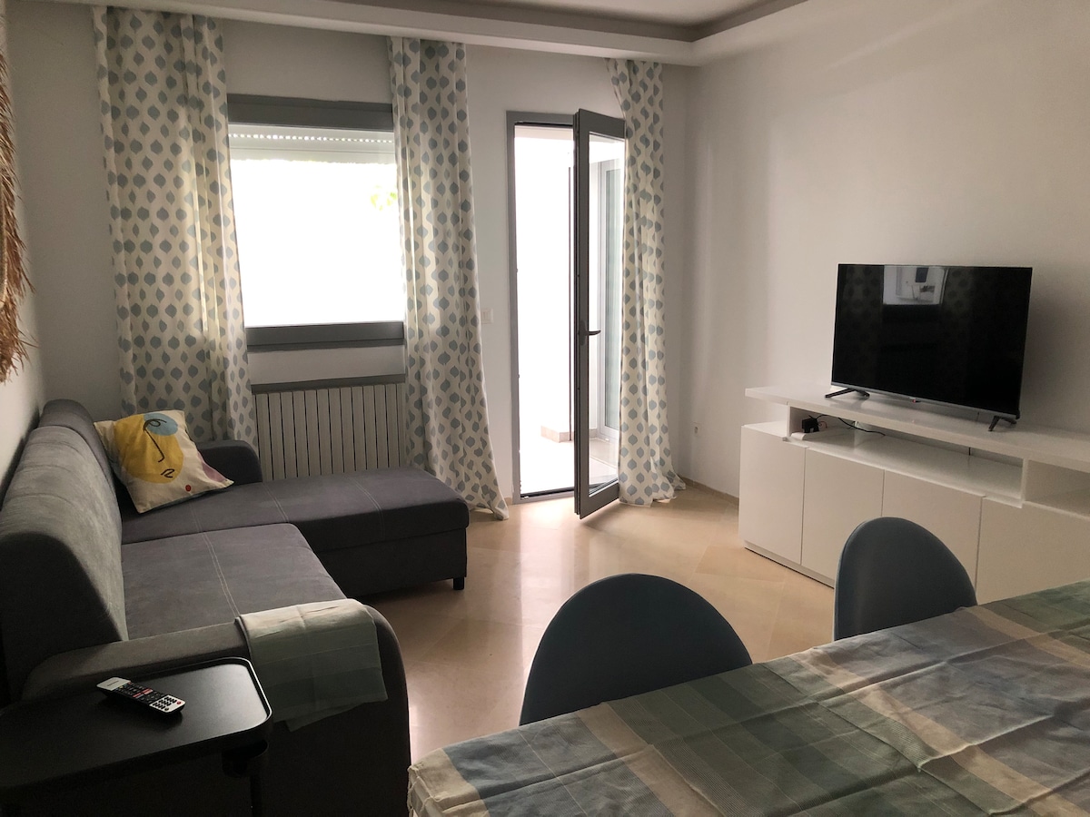 *ONE bedroom 🛌 with king size bed , work space laptop friendly and a dressing * ONE bathroom 🛁 with bath tray, candles, liquid soap, toilet roll and fresh towels * Fully equipped kitchen with breakfast essentials 🍳 , home made Tunisian 🇹🇳 spices to make delicious food 🥘 * Kitchen is opening in a spacious living room with L shape sofa where tou can enjoy watching your favorite movies 🎥 * A big balcony where you can enjoy an afternoon tea 🍵 with a view ( washing machine 🧺 is in the cornes)