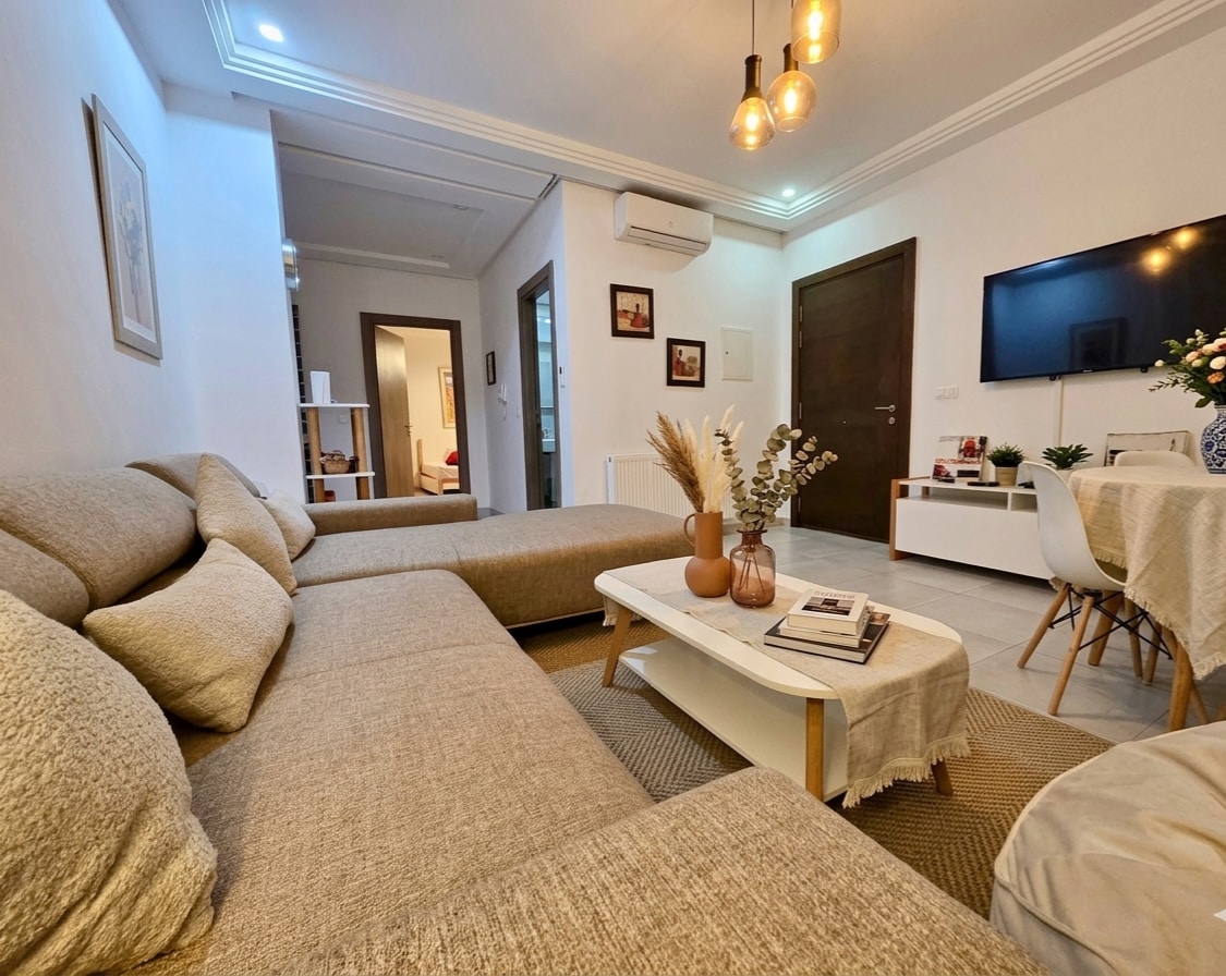 Situé dans un quartier récent, à proximité de toutes les commodités, cet appartement unique est un véritable hommage au savoir-faire des artisans locaux, qui ont tous contribué à sublimer cet espace. Dans une atmosphère chaleureuse et accueillante, vous aurez l’occasion de vivre pleinement l’authenticité et la richesse de la culture artistique tunisienne, incomparable en son genre. Chaque détail a été soigneusement pensé pour vous garantir une expérience de séjour inoubliable.