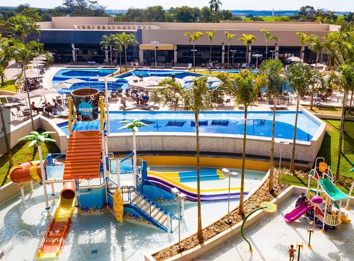 O resort tem piscinas com água aquecida, spa, sauna, brinquedoteca, fraldário, cinema, equipe animadora, lanchonete, restaurantes, sala de jogos , fliperama, estacionamento coberto com 1 vaga por quarto, cadeira de massagem, burguer King, pizzaria, steak house, dentre outras lojas. O parque aquático Thermas dos Laranjais fica ao lado.