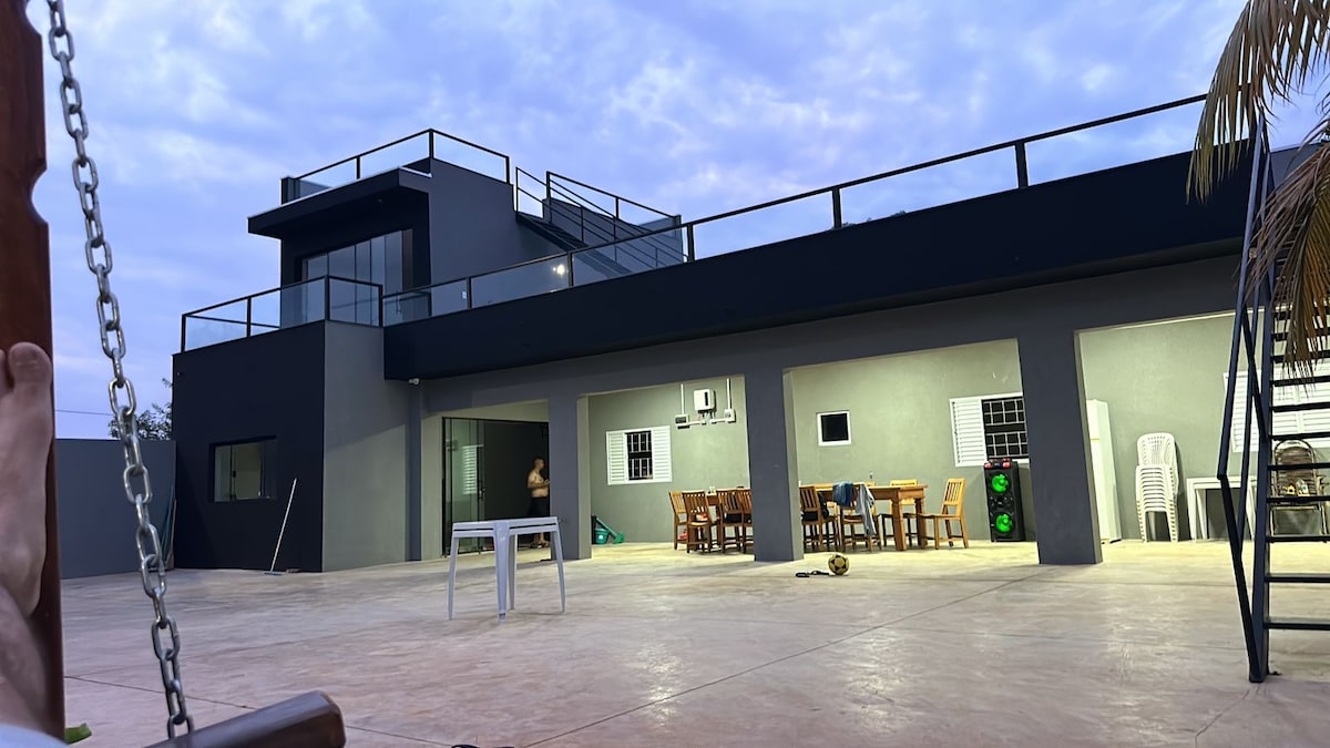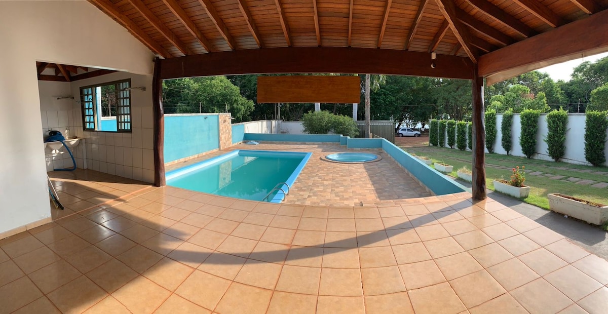 Disconnect from the world and reconnect with nature! Our rustic-chic ranch, nestled at the charming meeting point of the Ribeirão Azul and Lafon rivers, is the perfect setting for unforgettable moments. Relax in the SPA, toast by the fireplace, swim in the heated pool, and have fun on the soccer field and pool table. Enjoy barbecue prepared on a wood-fired oven and stove. Wake up to birdsong and, if needed, work comfortably with fast Wi-Fi. Come and live this unique experience!