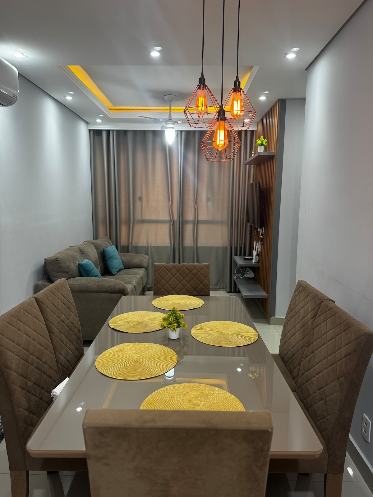 O apartamento está localizado em uma região privilegiada da cidade, e totalmente planejado para a vida moderna, 2 quartos, incluindo um home office adaptado e integrado ao ambiente da sala. Equipado com lençóis e toalhas de luxo, TV , internet, utensílios de cozinha, microondas, geladeira, liquidificador, bebedouro, airfryer, máquina de café, grill, jogo de panelas completo, lavadora de última geração. Ambientes com ar condicionado! Condomínio : home office, academia, piscina, playground.
