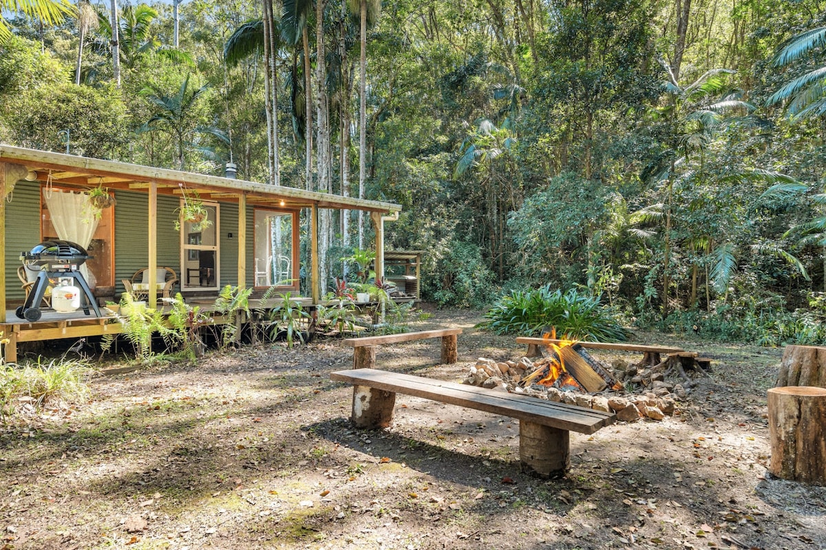 Welcome to Tallowwood House at Koru Sabi Lodge where you can relax in your own private sauna; stargaze from the outdoor bath or get cozy inside by the fireplace. See more pictures and videos on our IG: @koru_sabi_lodge If your dates aren't available, book our sister cabin, Pine House on the same property. You are: - 5 mins to the General Store & Natural Wine Shop - 15 to the nearest beach - 20 to Brunswick Heads - 30 to Byron Bay - 40 to Gold Coast airport
