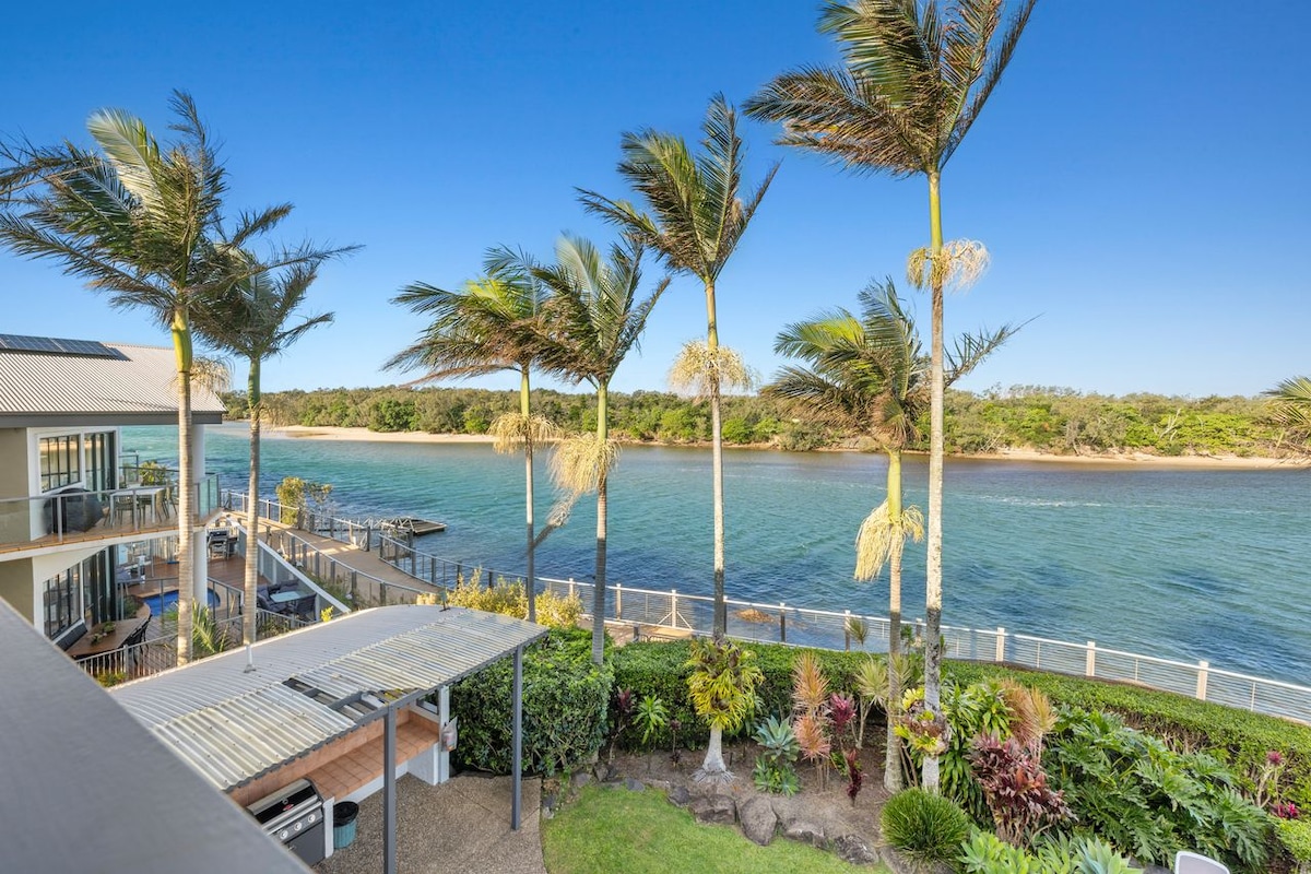 Relax in our beautiful 4 bedroom family home. 5 minute stroll to town centre and beach. Aircon New . Enjoy a dip in our secluded pool . Take in the sunset on our spacious outdoor deck overlooking the canal and sunsets over Mount Warning. 4 bedrooms with storage, blockout blinds ceiling fans, opening windows . North facing dining / living area, deck and undercover alfresco BBQ area. Fully equipped kitchen. Professional cleaning service used after each stay. Linen and towels included.