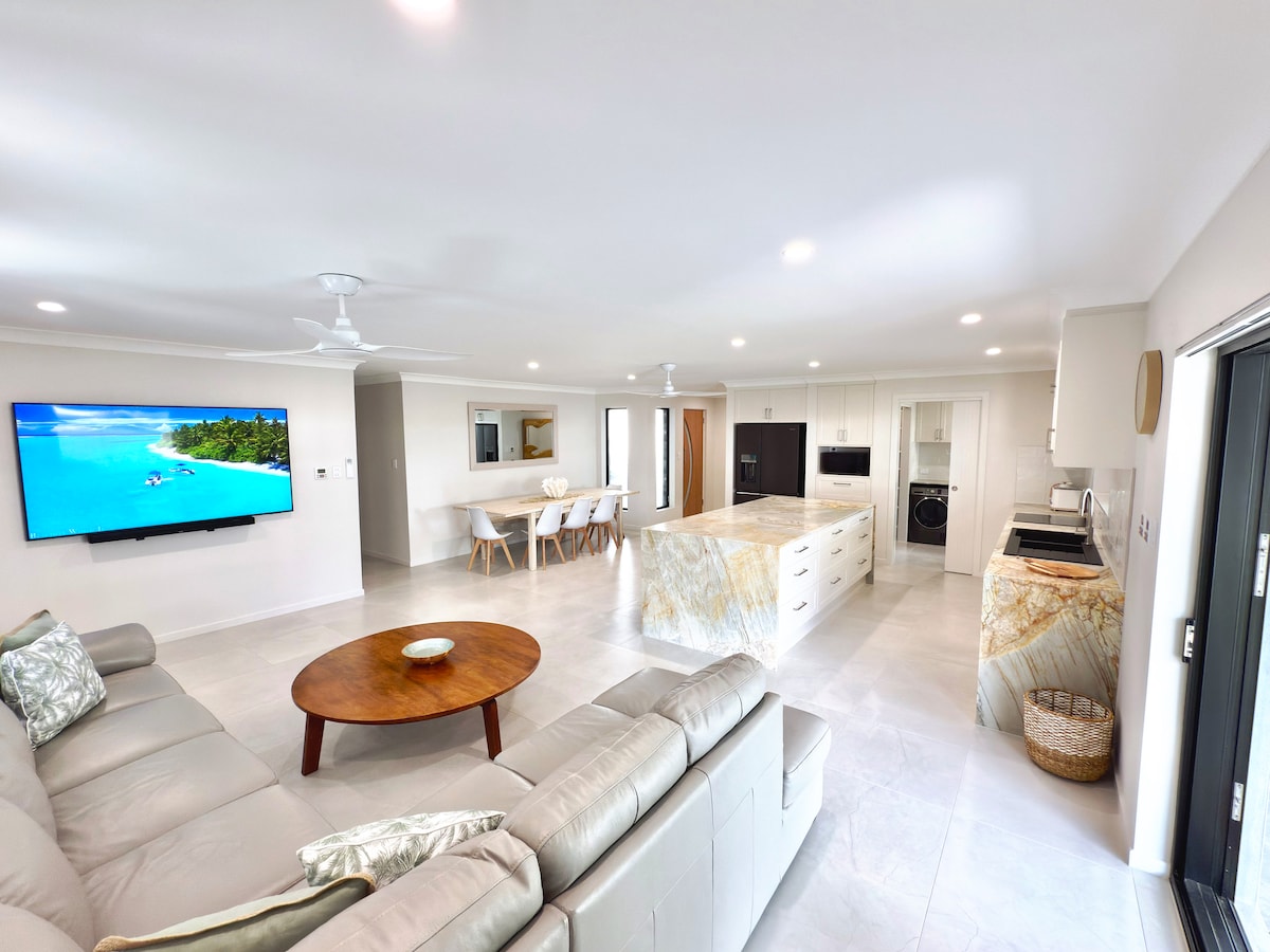 Gorgeous resort style home 200 metres from Maroochy river. Spacious open plan living overlooking the alfresco and pool area. Perfect spot for a family getaway with Multiple living areas. The home has a beautiful ambience with lovely views to Mt Coolum. 4 bedrooms with ensuite and walk in robe. Separate toilet and bathroom and washroom. The kitchen is stocked with all the tools you need to cook a feast including a teppanyaki plate and gas cooktop. Fully Fenced yard. ALL PETS TO BE APPROVED