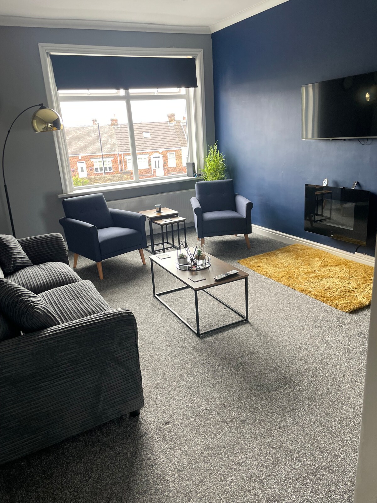 Charlie’s place is a ground floor flat in a residential part of Jarrow. It has 2 bedrooms 1 very large with Kingsize bed and the other is small with a small double bed. It has a lounge with couches, Smart TV with DVD player A fitted bathroom with shower and bath and new fitted kitchen with yard to rear. It would suit anybody visiting or working in the Tyne and Wear area and 20 mins walk to metro station and all major road links are nearby