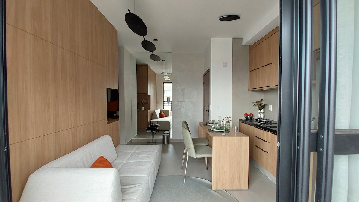 Um espaço pensado para quem valoriza design, conforto e uma experiência urbana sofisticada. O Loft Sunset combina arquitetura contemporânea com uma atmosfera acolhedora e funcional. O projeto integra ambientes de forma inteligente, com marcenaria sob medida, iluminação planejada e uma divisão elegante entre sala e dormitório, garantindo privacidade sem perder amplitude. Curta uma experiência elegante neste lugar bem-localizado.