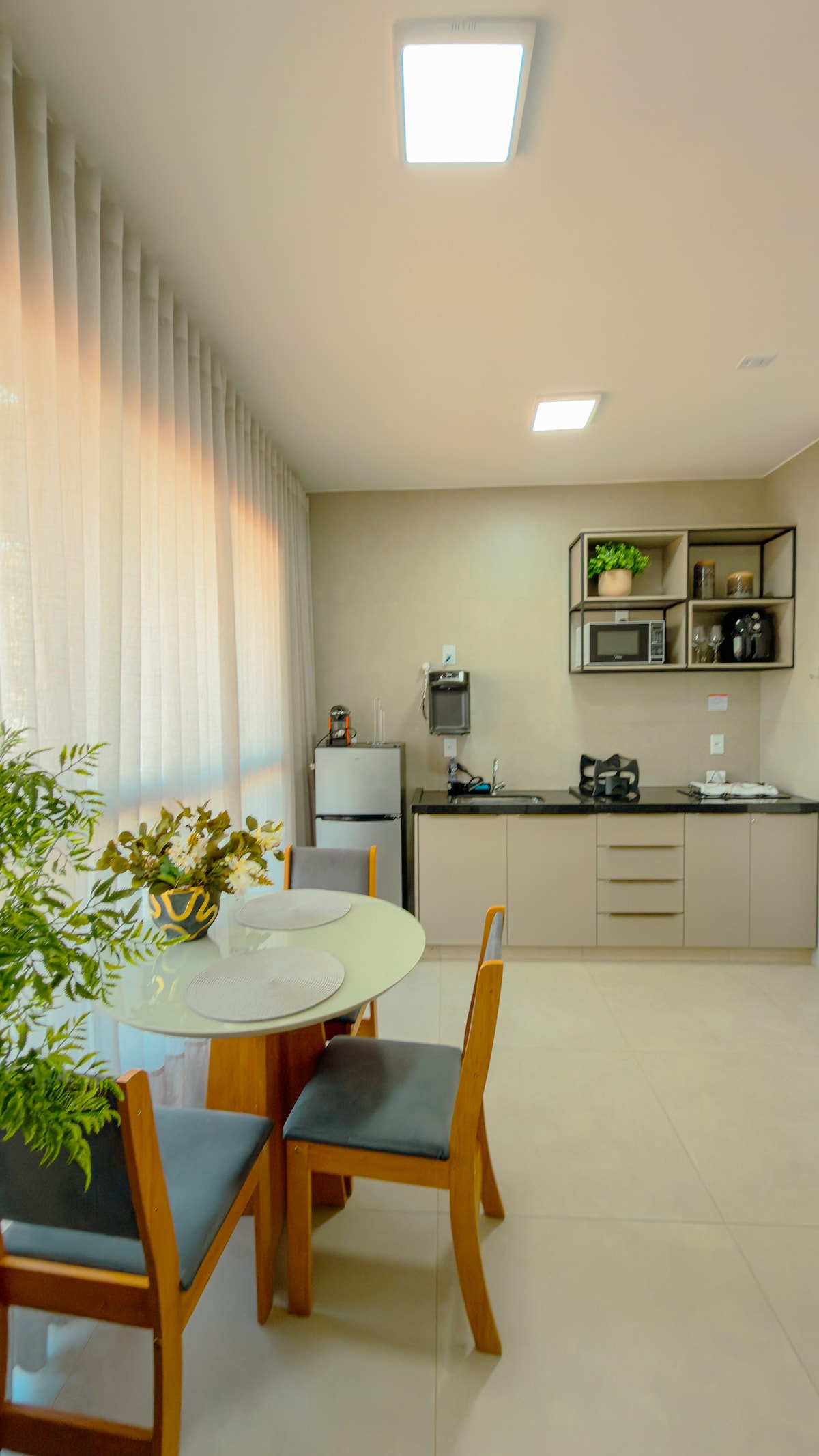 Studio completo, moderno e aconchegante — perfeito para curtas ou longas estadias. Pet friendly, com internet rápida, cozinha totalmente equipada (panelas, utensílios e eletros), e uma vista linda para relaxar. O condomínio oferece piscina, lavanderia, academia e portaria 24h, além de estar muito bem localizado: perto de padaria, farmácia e mercadinho. Um espaço pensado para quem busca conforto, praticidade e bem-estar.