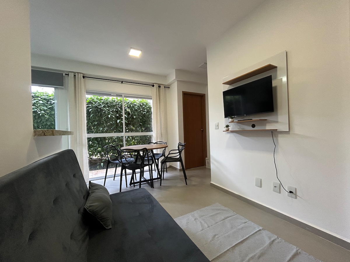 Studio completo, moderno e aconchegante — perfeito para curtas ou longas estadias. Pet friendly, com internet rápida, cozinha totalmente equipada (panelas, utensílios e eletros), e uma vista linda para relaxar. O condomínio oferece piscina, lavanderia, academia e portaria 24h, além de estar muito bem localizado: perto de padaria, farmácia e mercadinho. Um espaço pensado para quem busca conforto, praticidade e bem-estar.