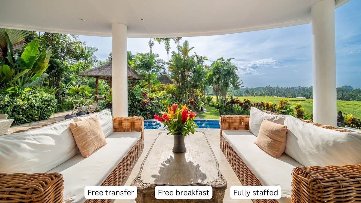 乌布宁静的1卧室别墅,可俯瞰稻田