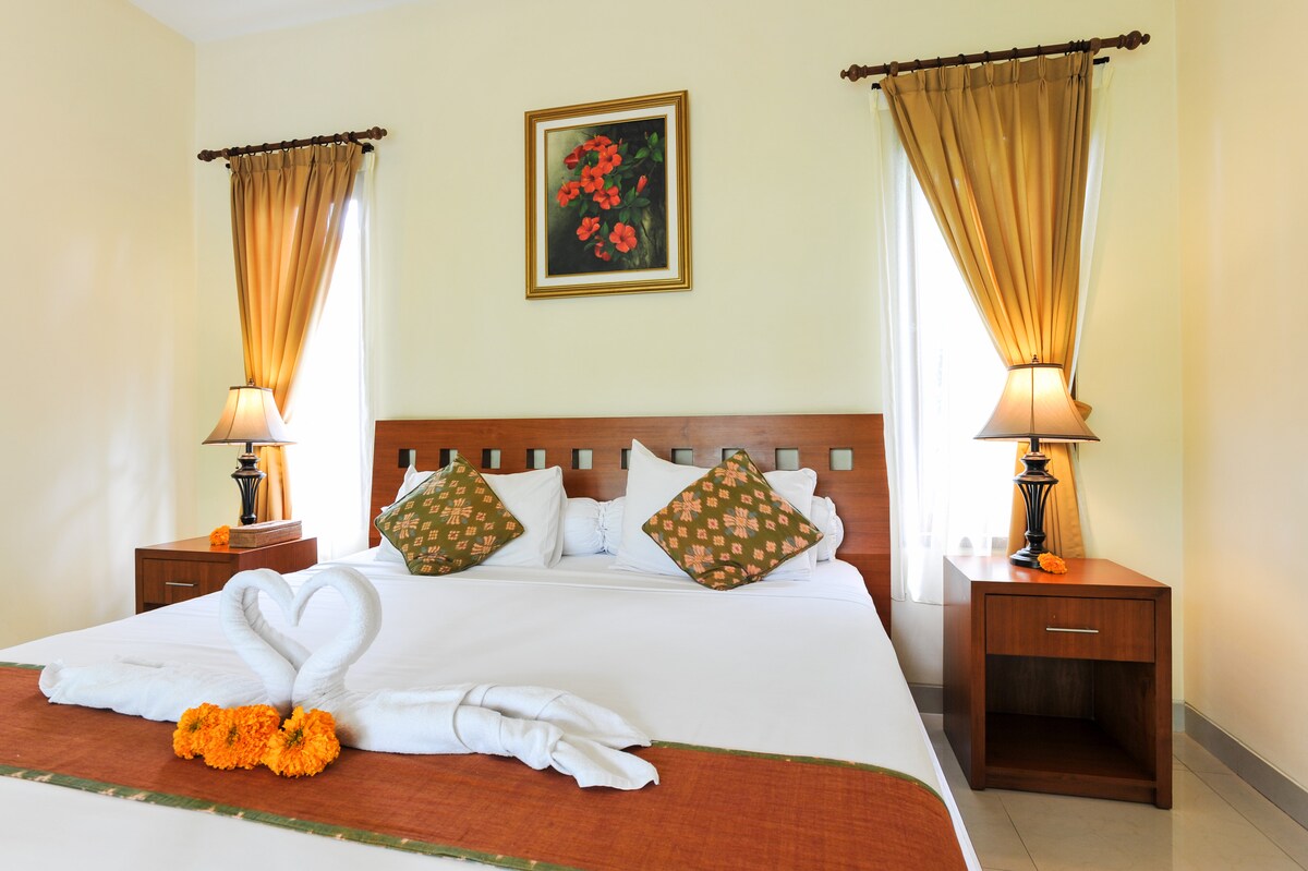 Boasting modern design, each room at this resort is air-conditioned and fitted with a flat-screen TV and an electric kettle. A seating area is provided for you to relax in. In each room guests enjoy a private and spacious bathroom for your comfort, you will find bathrobes, free toiletries and a hairdryer.Located in the middle of Ubud yet the resort is quiet feels like in the jungle far from Ubud. A 4-star Resort with excellent service with Balinese warn Hospitality.