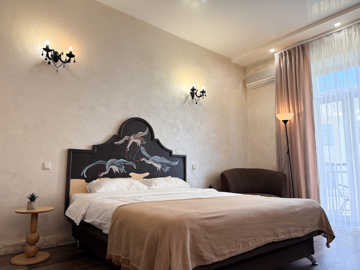 A stylish apartment in the center, designed in Scandinavian style with vintage furniture and modern art. It is located a 15-minute walk from the beach and 10 minutes from the central park, surrounded by many restaurants and bars. A pre-revolutionary building with a cozy Odessa courtyard. The apartment features a separate bedroom with a double bed and a comfortable sofa bed in the living room. The apartment is fully equipped with everything you need.