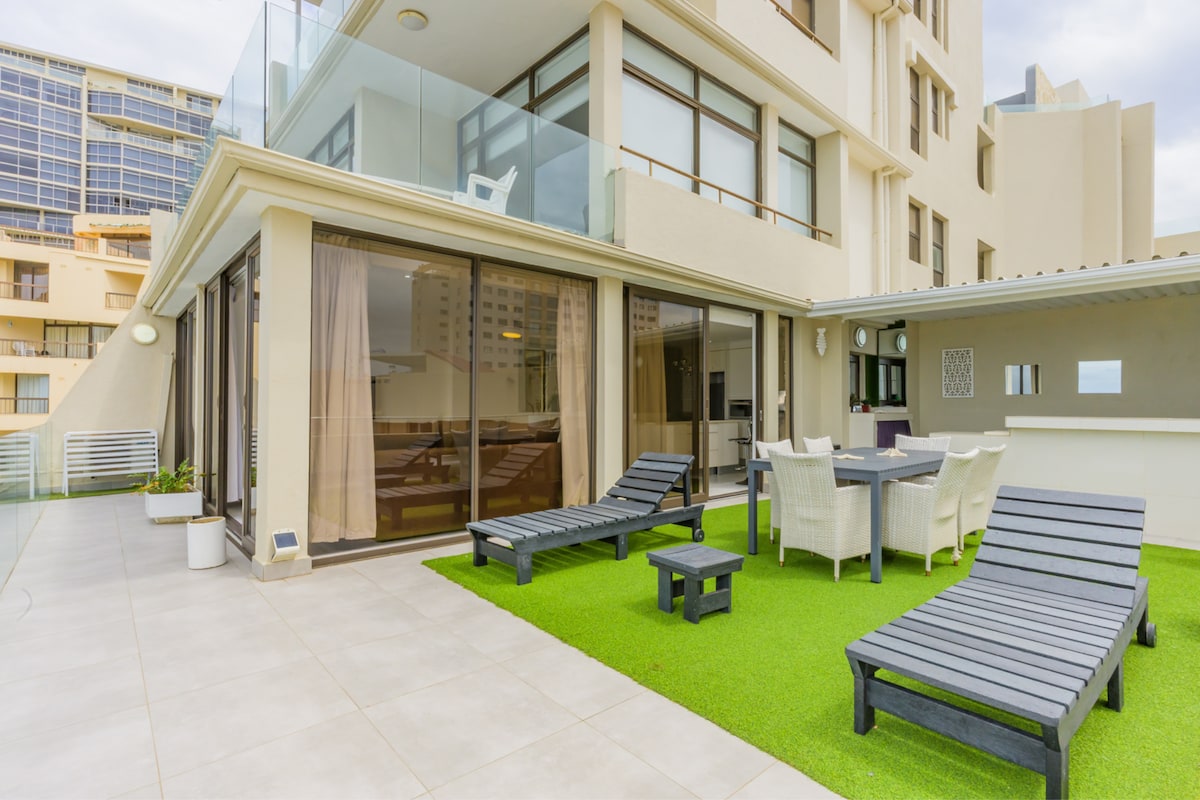 Nestled at the end of the beach promenade in the heart of Umhlanga Rocks Village, this upmarket studio on the beachfront, is designed to meet all your expectations. Breath-taking views, songs of the ocean waves, the most stunning sunrises, private sauna and luxurious furniture and fittings welcome you! Equipped with a water tank, a water filter and an inverter for increased guests' comfort (i.e. drinkable tap water and no load & water shedding).