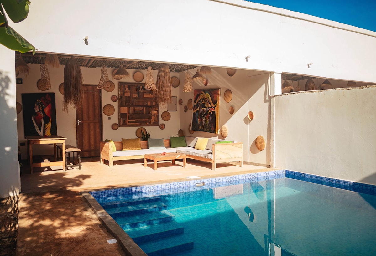 Apartament w stylu suahili przy samej plaży Wyjątkowy apartament inspirowany stylem suahili, położony przy plaży, z prywatnym basenem. Naturalne materiały i jasne wnętrza tworzą spokojną, tropikalną atmosferę. Dom jest nowy Do dyspozycji: 2 sypialnie, 2 łazienki, salon z w pełni wyposażoną kuchnią, taras idealny na poranną kawę, Basen jest prywatny ! Komfortowe miejsce na relaks nad Oceanem Indyjskim — połączenie lokalnego klimatu i nowoczesnych udogodnień. W cenie codzienne sprzątanie, Wifi