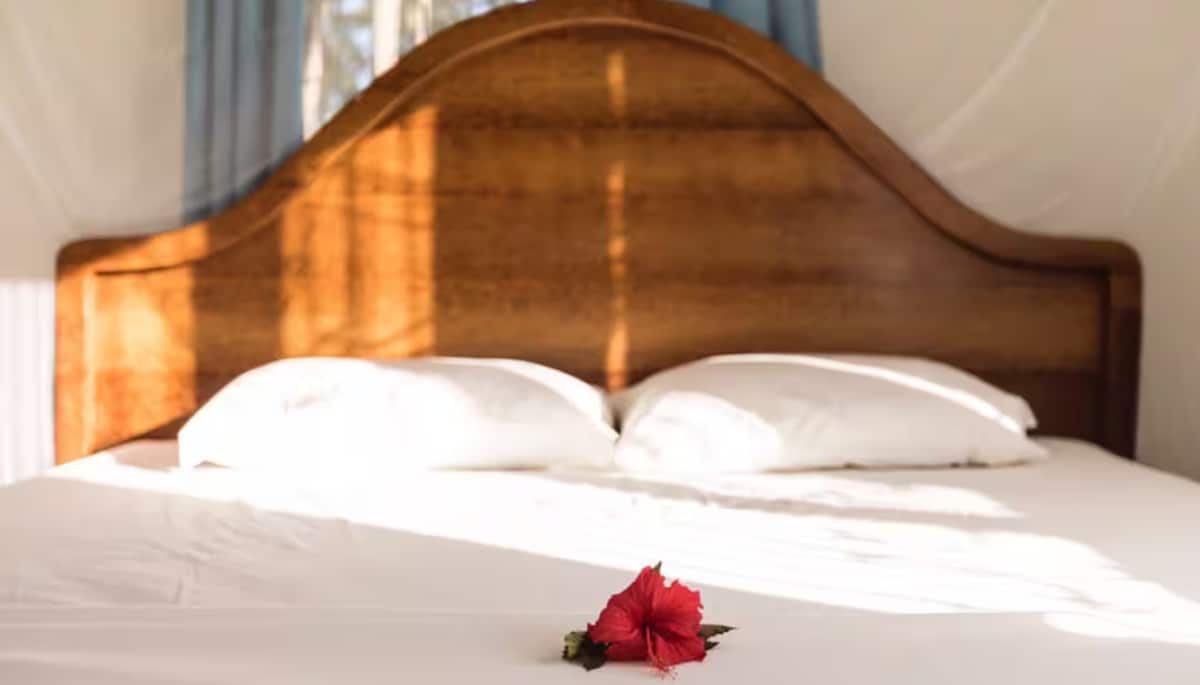 The suite is a part of 8 rooms Gaia Villas hotel in Nungwi. Nestled in a tropical paradise, our stylish accommodations are a perfect blend of comfort and charm. We invite you to slow down and experience Zanzibar ‘Hakuna Matata’ and ‘Pole pole’ life. Unwind by our beautiful swimming pool and enjoy our lush tropical garden. At our hotel, we treat everyone like family, ensuring that all guests enjoy their stay to the fullest. We're located 650m from the beach (~7 mins walk).