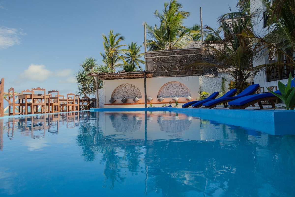Experience luxury at our beachside hotel, featuring 24 Deluxe suites with stunning pool and garden views. Each suite is spacious, airy, and filled with natural light, offering a living area, balcony, and terrace. Enjoy exquisite dining at our on-site restaurants. Located just a one-minute walk from the pristine white sands of the Indian Ocean beach, it's the perfect destination for relaxation and adventure. Indulge in the ultimate seaside getaway where comfort meets paradise.