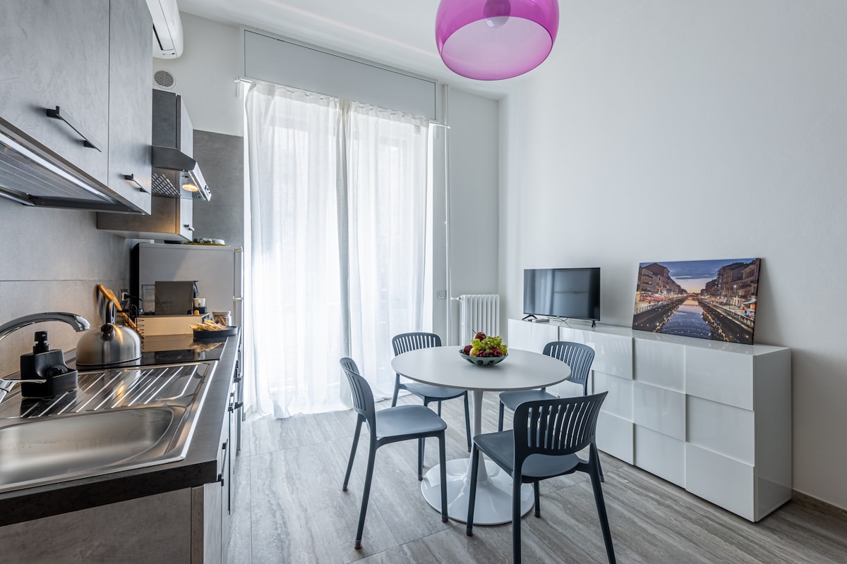 Romantic and quiet one-bedroom apartment on the Navigli, 7th floor with elevator and Wi-Fi, fully equipped with all comforts. 🌆 Located on Naviglio Pavese, in the heart of the historic Navigli district, just steps from the new Darsena and Milan’s lively nightlife. 🚇 10 min walk to Porta Genova metro, 200 m to tram n.3 for the Duomo in 12 min. Piazza Duomo also reachable with a scenic 25-min walk. We can’t wait to host you! 😊 LATE CHECK-IN AVAILABLE ON REQUEST