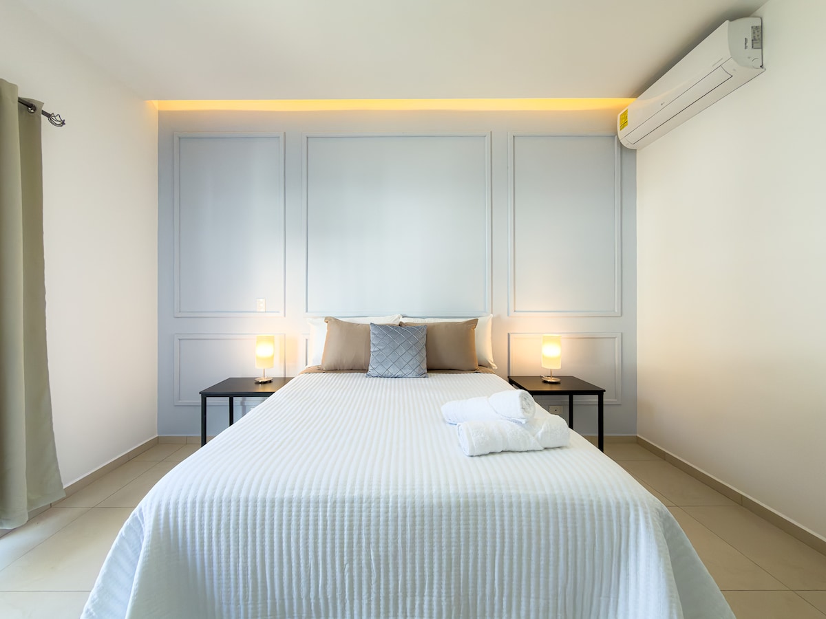Luxurious, modern and spacious apartment in a central area of the capital. New building. It has a balcony and a nice view of the city. It is very well equipped with everything you need for a pleasant stay. With fast Wifi, TV, hot water, air conditioning, two parking spaces, kitchen with everything you need. Apartment very well located, less than 5 minutes from the largest shopping centers, restaurants and bars. It is located in a safe and exclusive area Rooftop with pool and gym