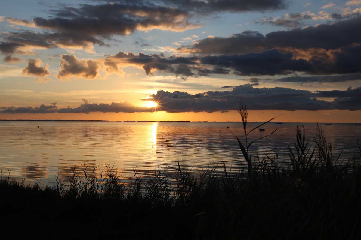 海滨度假屋,私人海滩和日落景观