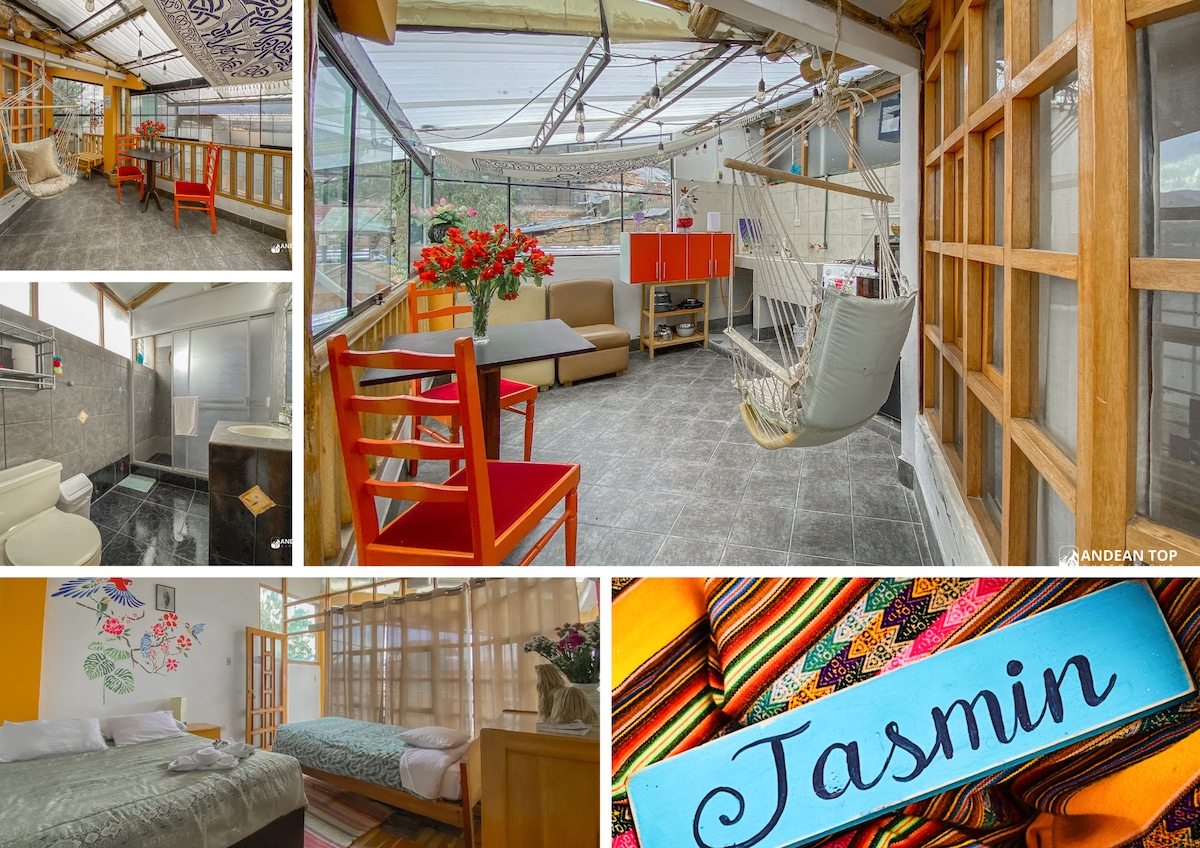 Enjoy city and mountain views from your private oasis in historic San Blas, Cusco. Press "Show More" for full description Whether you're seeking: A paradise with fiber optic internet A romantic getaway A place to enjoy good company Or anything else! We're here to make your stay unforgettable. ✨ Rest peacefully under plush down comforters. ✨ Start your day with a delicious breakfast served daily. ✨ Unwind in the hot tub after exploring Cusco. ✨ Enjoy movie nights in your private theater.