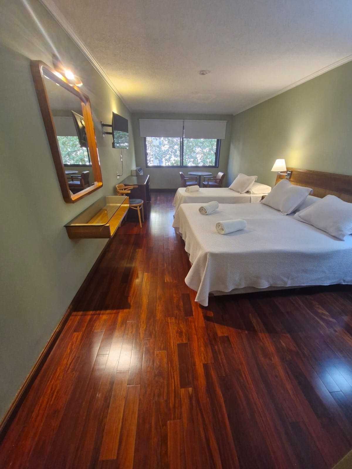 Aparts totalmente equipados para 2 y 4 personas con dormitorio principal con sommier matrimonial y terraza, tv, aire acondicionado, baño con ducha hidro, cocina completa, patio con parrillero. Incluyendo: - Ropa de cama, toallas y toallones - Batas para el Spa - Servicio diario de Mucama (en temporada alta) - Wi-Fi - Vigilancia nocturna Zona de Piscinas y Spa: - Piscina climatizada exterior con deck-solarium - Piscina termalizada interior con hidrojets - Jacuzzi - Sauna finlandés