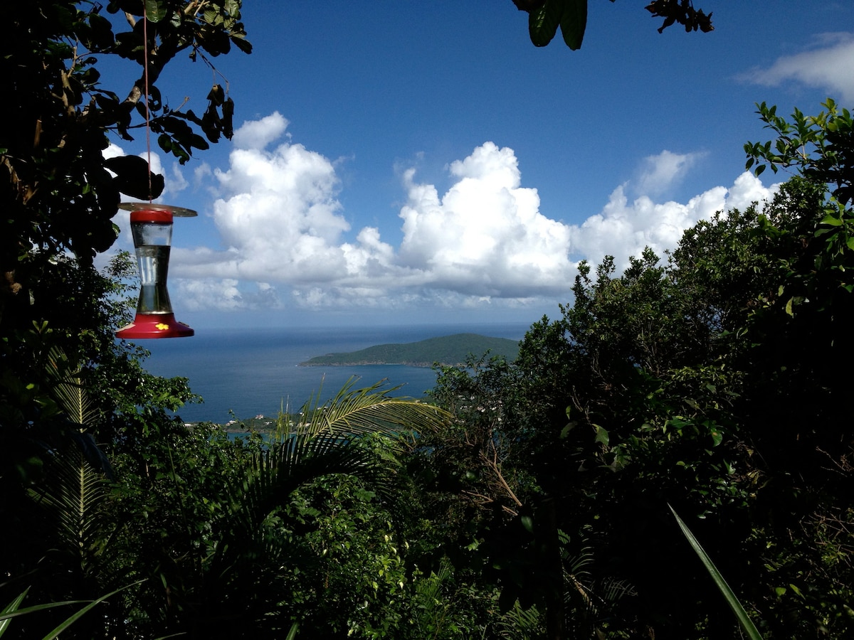 Romantic and Private located high upon St Peter Mountain. A cozy one bedroom apartment- fenced and gated, feels like a mini estate, located on the cool lush Northside of St Thomas. Overlooking picturesque Magens Bay ( on of the ten most beautiful beaches in the world. You will awaken and have breakfast on the deck with the hummingbirds and sugar birds having their sugar burst for the day. In the evening watch the last of the hummingbirds while you have a glass of wine or rum and coke.