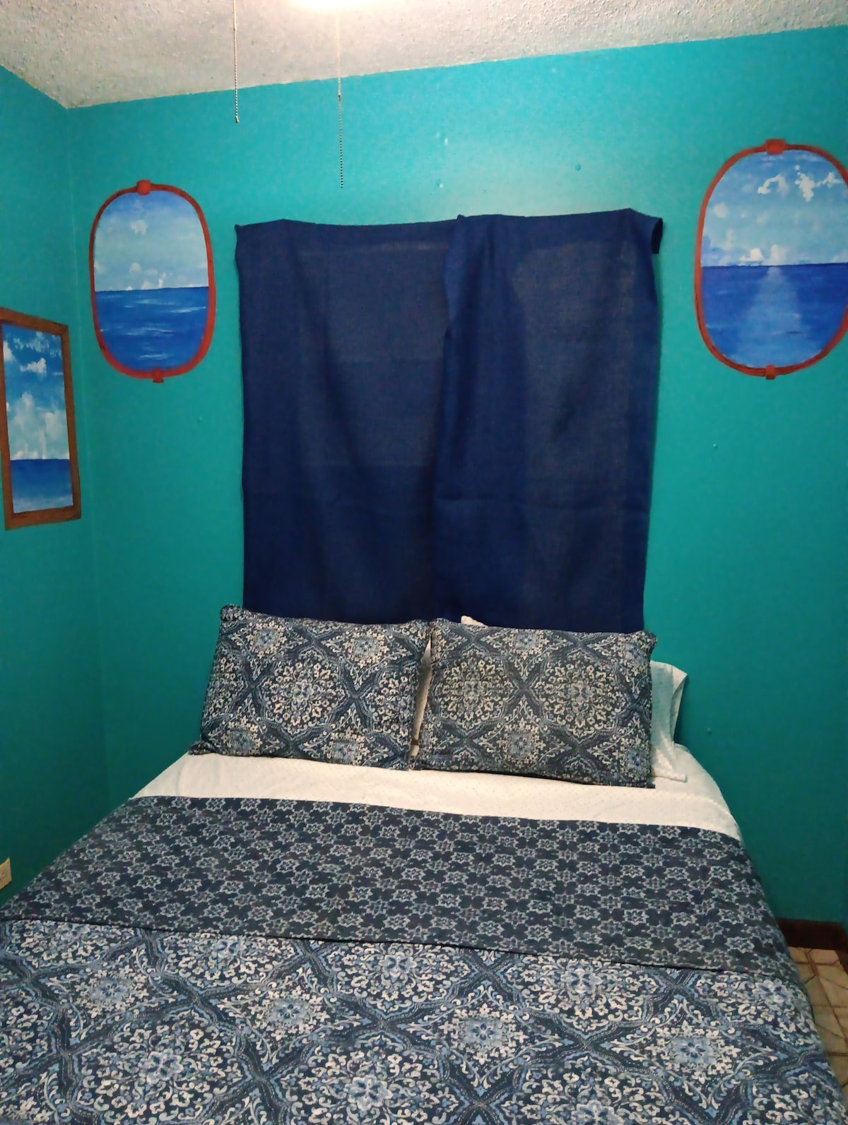Nestled in cozy quiet Mountain Top area overlooking Charlotte Amalie Harbor. Ten minutes to infamous Magen’s Bay. Ten minutes to downtown shopping. One BdRm fully-furnished Apt centrally located at Four Corners. Ideal for a visiting couple. Sofa pullout queen bed for a couple kids. Air conditioned, washer-dryer, ice maker. Linens, towels, dishes, cutlery, utensils, coffee maker, microwave, toaster, On-site 5,500 Generator. Pls note: Gas oven off as preventative hazard. Six top gas burners on.