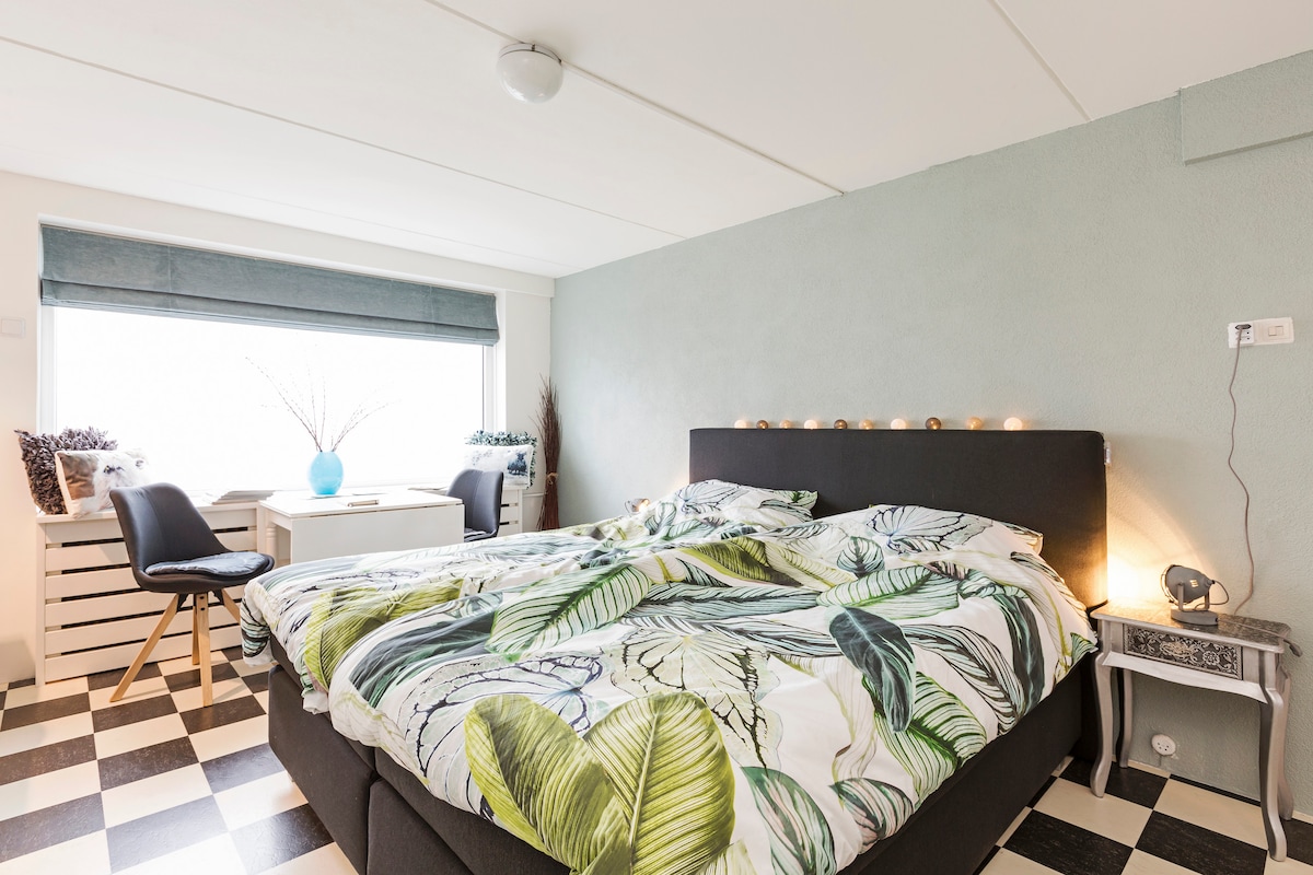 Deze nette twee persoonskamer met eigen toilet en badkamer heeft zijn eigen entree. Het ontbijt is inclusief. Er is geen kookgelegenheid maar je kunt wel koffie of thee maken. Er is een koelkast. Op 5 minuten lopen kun je fietsen huren. Ik moet dit dan wel minstens twee dagen van te voren weten. Het treinstation is 15 minuten lopen. De treinen rijden rechtstreeks naar Utrecht, Amsterdam en Zwolle. Supermarkt en restaurants 5 minuten lopen. Ikea 10 min lopen.