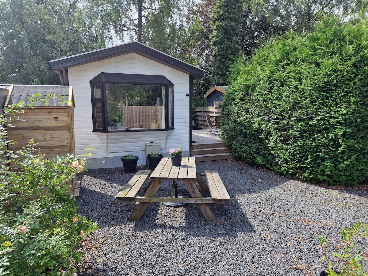 Dit Scandinavische huisje deel ik graag met anderen om te laten genieten van dit unieke plekje .Het is een kleinschalig park (14 huisjes)waar rust en natuur de boventoon heeft. Het park is beveiligd met een automatische poort. Je loopt de straat uit zo het bos in.Als je een hond hebt, kun je heerlijk wandelen vanuit t park.Het chalet is van alle gemakken voorzien met o.a rolluiken ,eigen parkeerplek, palletkachel,vaatwasser,inloopdouche,hor gordijn in slaapkamer, bad op pootjes, aircooler.