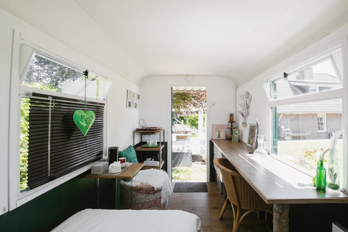 Voel je welkom! Achter ons huis staat De Schuur, een romantisch, sfeervol en uniek gastenverblijf, voorzien van alle gemakken zodat je heerlijk tot rust kunt komen en je je geniet modus aan kunt zetten. Geniet lekker van de jacuzzi en sauna op de veranda. Er is een gas bbq aanwezig en een heerlijke buitenhaard. ( BBQ en buitenhaard tegen betaling ) De bakker met verse broodjes is op loopafstand. Kasteel Sypesteyn ligt aan de overkant van de weg. Amsterdam en Utrecht +/-20 min.
