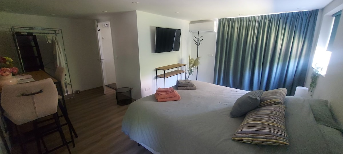 宽敞的单间公寓和花园,免费自行车,空调,厨房