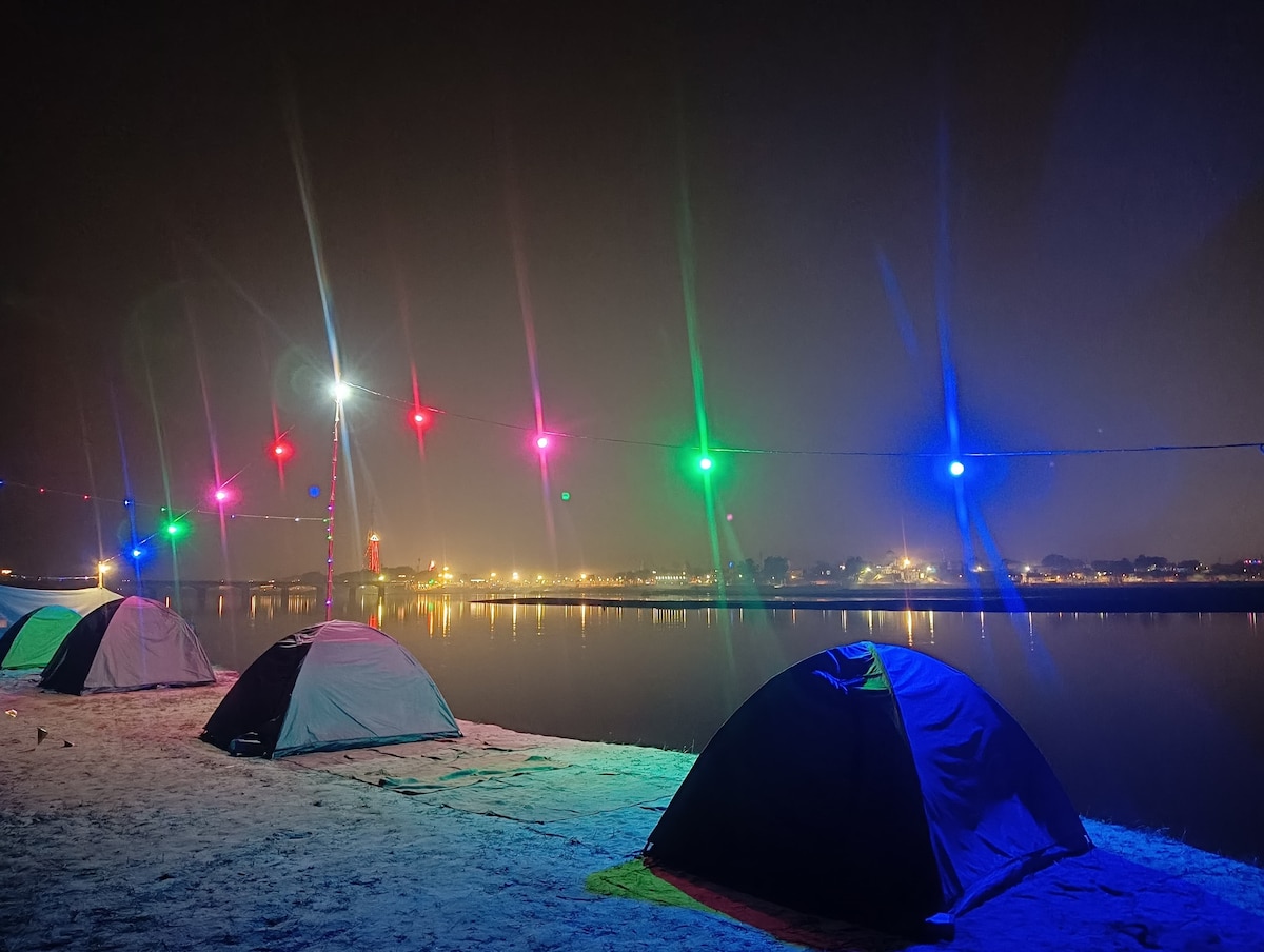 A tent by the river bank near the sand, under the shade of trees, at 0 degrees sea level listening to the kingfishers and bouglas.Awakening to see the beautiful sunrise...the fisherman's net pulled to the boats full of fish.The chirping of birds wake you, and the songs of the fishermen(virahs) put you to sleep like a lullaby song. Best of all is that you have a modern bathroom for yourself.