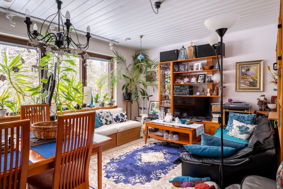Warmly welcome to Villa Old Appletree 💚 A cozy accommodation just seven minutes from Helsinki-Vantaa Airport. We are a prime location for family holidays, film productions and relaxing weekends. Here you can enjoy unhurried rest, a traditional Finnish sauna, ice dipping (custom made freezer just for this) and a peaceful traditional Finnish garden. An excellent choice for families and groups who value privacy, a beautiful garden and easy access to airport.