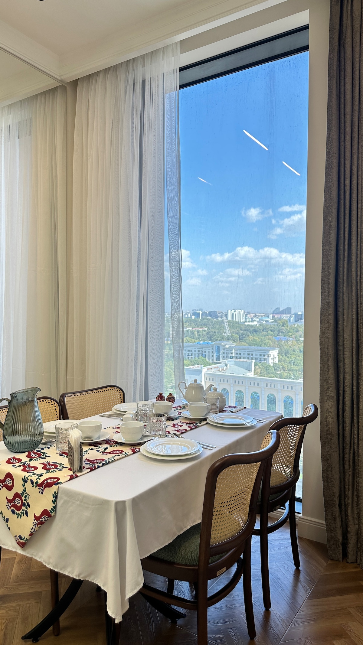 Welcome to my cozy 14th-floor apartment in Nest One, Uzbekistan’s tallest skyscraper (220m). Designed for comfort and elegance, it’s perfect for up to 3 guests with 1 king-size bed and a full sofa bed. This 60 m² two-room apartment combines modern design with vibrant Uzbek touches, offering high comfort and breathtaking views of Tashkent’s city center.