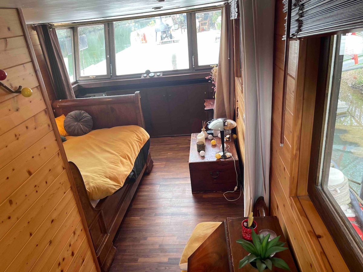 Envie d’une expérience unique et dépaysante ? Bienvenue à bord de Mira! Amarré dans un cadre paisible , ce bateau vous offre une nuit insolite au fil de l’eau, parfaite pour une escapade romantique, une pause nature. 🛏️ Le logement Couchage pour 2 personnes. Coin repas (évier, frigo) ,WC + lavabo (pas de douche !!) 🅿️ parking à proximité (gratuit) ⚠️ À savoir • Le bateau reste à quai (non navigable pendant votre séjour) • Non adapté aux enfants en bas âge / animaux non acceptés