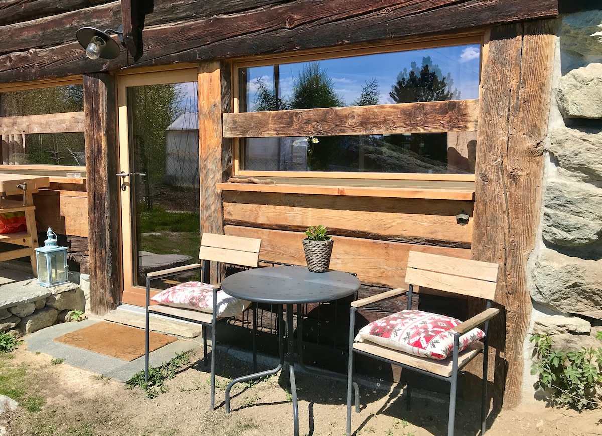 Le studio est situé dans l'ancienne écurie de notre mayen. Il a été récemment rénové et comprend un lit de 140cm, une salle de bain avec douche, un espace repas, une terrasse privée et une kitchenette. Le chalet se trouve en dessus du village de Mase à 1600m d’altitude dans une zone Mayens, à l’orée de la forêt. La vue sur le val d'Hérens est imprenable... De nombreuses randonnées sont possibles en partant du chalet. La station de ski la plus proche est Nax, à 10 min de route en voiture.