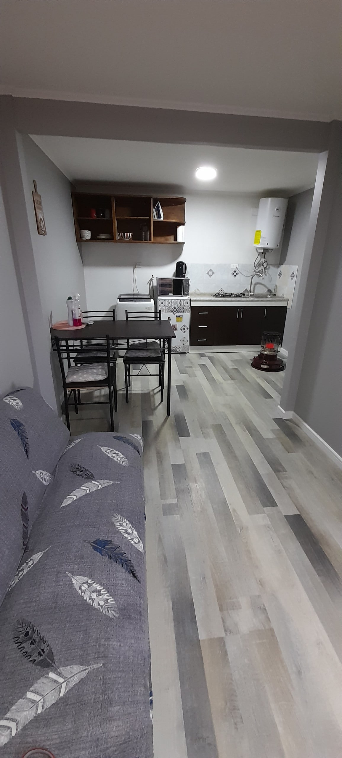 Departamento nuevo en planta baja con 1 dormitorio, cocina, living -comedor pequeño, baño, luz, agua caliente, calefacción a parafina, smartv x movistar, wifi y estacionamiento. Cerca de supermercados y hospitales, del centro a 5-7 minutos en locomoción, lugar muy tranquilo, Sector regional. Estamos sanitizando después de cada entrega del alojamiento. .
