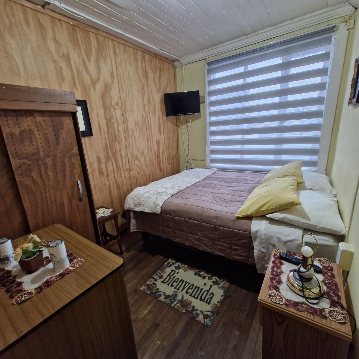 Cabañita, con cama de 2 plaza, baño y cocina. Ubicada cerca de plazas, parques urbanos y a 15 minutos caminando de la costanera de Valdivia(PARA TENER ENCUENTA LAS CABAÑAS ESTAN UBICADAS DETRAS DE LA CASA PRINCIPAL A DEMAS EL ESYACIONAMIENTO DEPENDERA DE LA CANTIDAD DE VEHICULO QUE ESTEN ANTES )